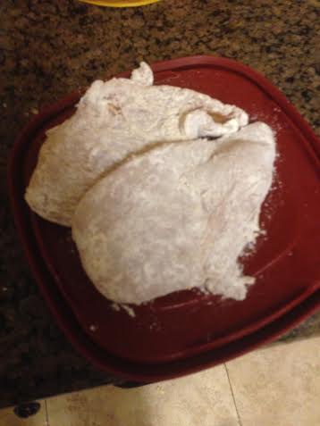 In a large Tupperware container, place chicken breasts, 1tbs. sugar and 2tsp. sea salt inside, cover, and shake vigorously for 30-40 seconds. If it helps, do a little dance in anticipation of some awesome grub! When the chicken is evenly coated, let it hang out until your doughballs have been rolled and are proofing.