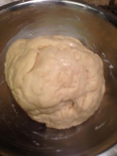 In a small bowl, combine the water and yeast. Next, in the bowl a large mixer, or large mixing bowl if kneading by hand, combine the flour, milk powder, salt, pepper and fat. Work the fat into the flour with a large serving fork or similar utensil until it becomes grainy, then stir to insure even distribution. Next, create a well in the middle of your dry ingredients and add the yeast and water mix. On medium-low with a mixer, or vigorously with a whisk, then hands once the whisk is ineffective, knead the dough mixture for 8-10 minutes. The dough should ball up and stick to the mixer’s arm. It shouldn’t be too tacky, and if it doesn’t come into a ball, simply add white wine 1tbs. at a time until the desired consistency is achieved.