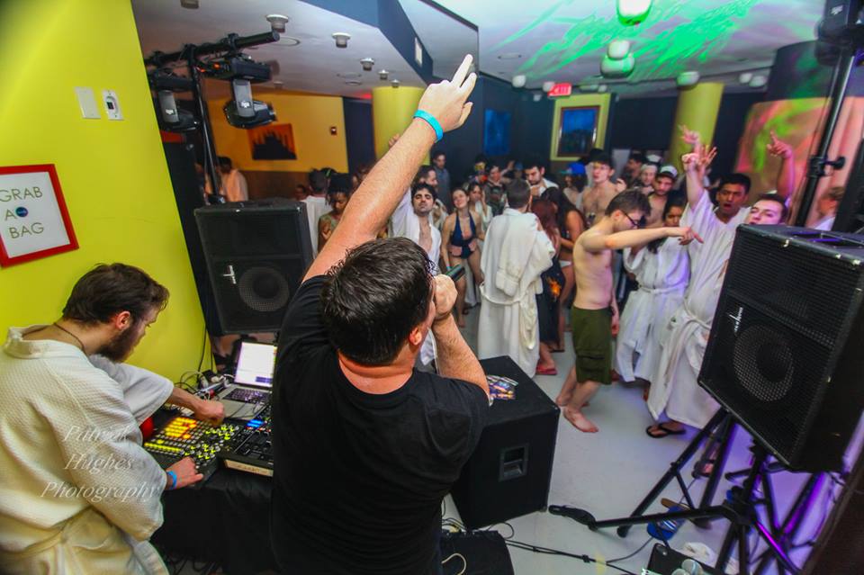 The infamous When in Robe spa dance parties thrown by Mr. Bugsly & the Lowtemp Label have been creating quite the buzz, and the album release party for Gibbz on Friday, March 14 was no different. On the roster for the night was also BRANX, Pomo (his first US appearance!), and resident DJ Subset. The parties are intimate, exclusive, and sexy – making it no wonder they’ve sold out in advance after each new announcement! There was an abundance of sultry tunes for partygoers to grind to, and a few inflatable beach toys here and there to really set the mood.  Featuring jacuzzis, cooling stations, plenty of lounging space and a spacious dance floor, this was easily the hottest party of 2014 thus far. Allow yourself to live vivaciously through these awesome photos by photographer Patrick Hughes!