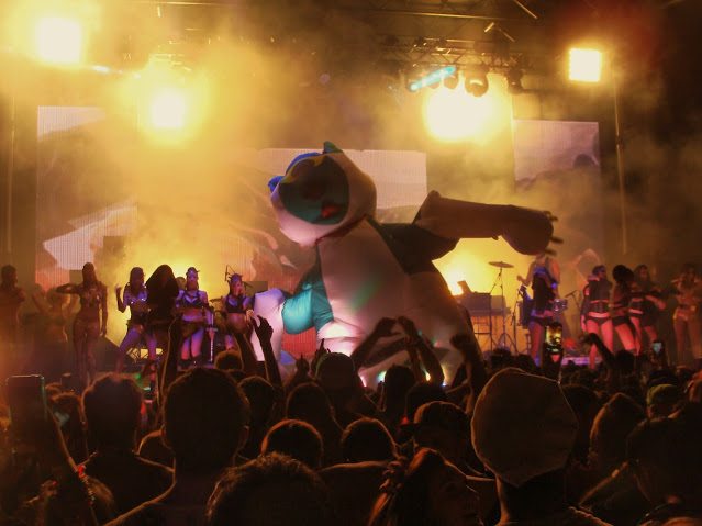 Never failing to bring the party, Zoe Jakes, Sidecar Tommy and David Satori are continuously upping the ante with every performance they give, and have yet to pause for a single breath. No doubt feeding off the abundance of energy provided by the crowd, Beats Antique delivered with a vibe worthy of their name. A unique sound formed by a range of instruments, from banjo, viola, lap steel guitar, and organ, always leaves audiences with a sense of awe. This performance was no different. Not only does Beats Antique have an unmistakable sound but the visual display is something to be admired. Music accompanied by projections of dinosaurs, inflatable animals, elaborate masks, and of course the hypnotic belly dancing of Ms Zoe Jakes makes their performances second to none.