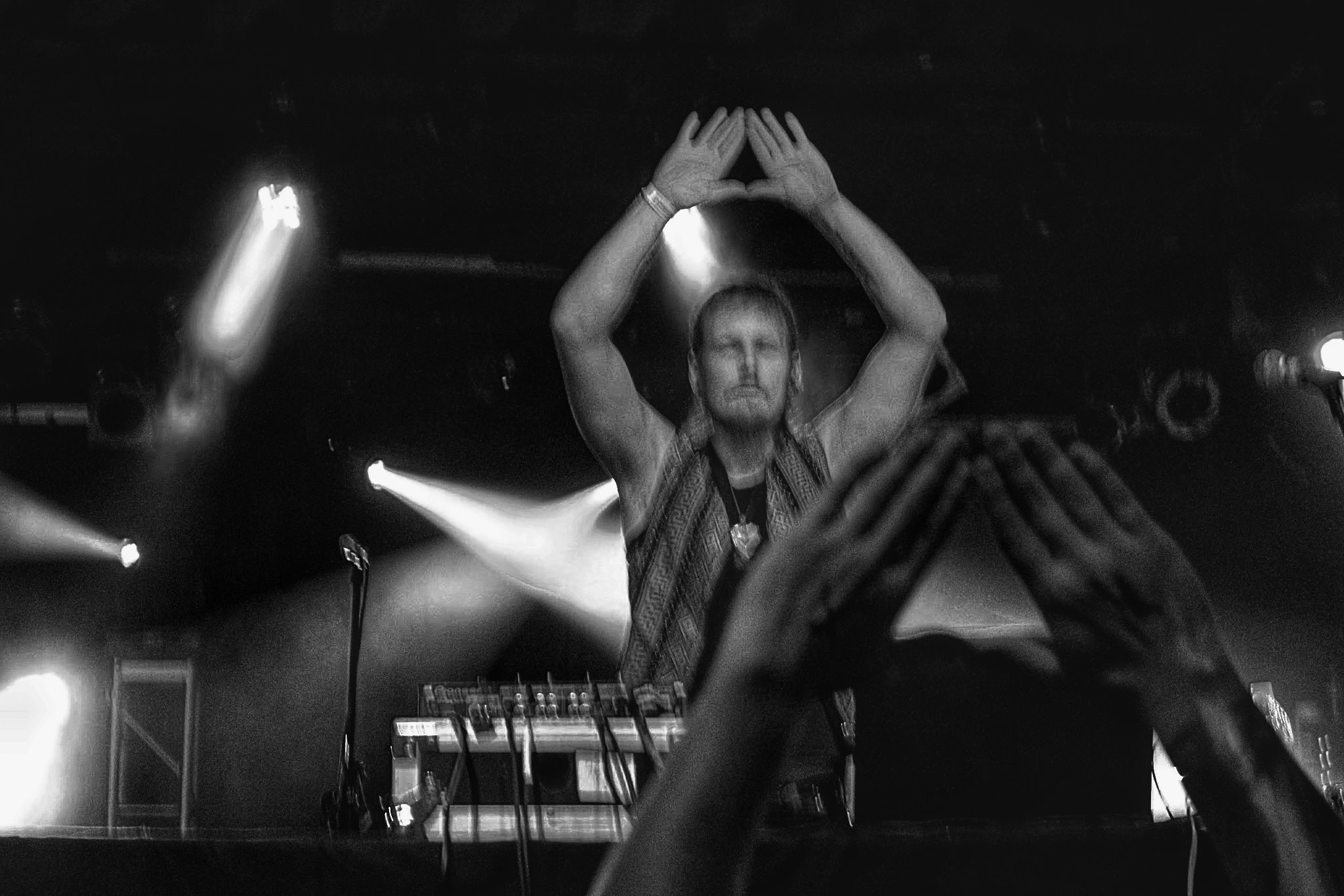 It wasn’t long before Kalya Scintilla took to the stage, unleashing his own addicting fusion of Middle Eastern influences and primal rhythms led by his seductive partner in crime, a brilliant performer who goes by the name of Eve Olution. The energy that Kalya shares with his crowd is something special; his tribal psydub productions truly make you feel as though you are taking part in an extraterrestrial drum jam somewhere beyond the cosmos. The shamanic approach he takes to his craft is beautifully inspiring; each stage is his altar, and we are all apart of his musical ritual. Though I was loving every minute of Kalya’s set, we had finally reached the most anticipated part of the night: Dirtwire.