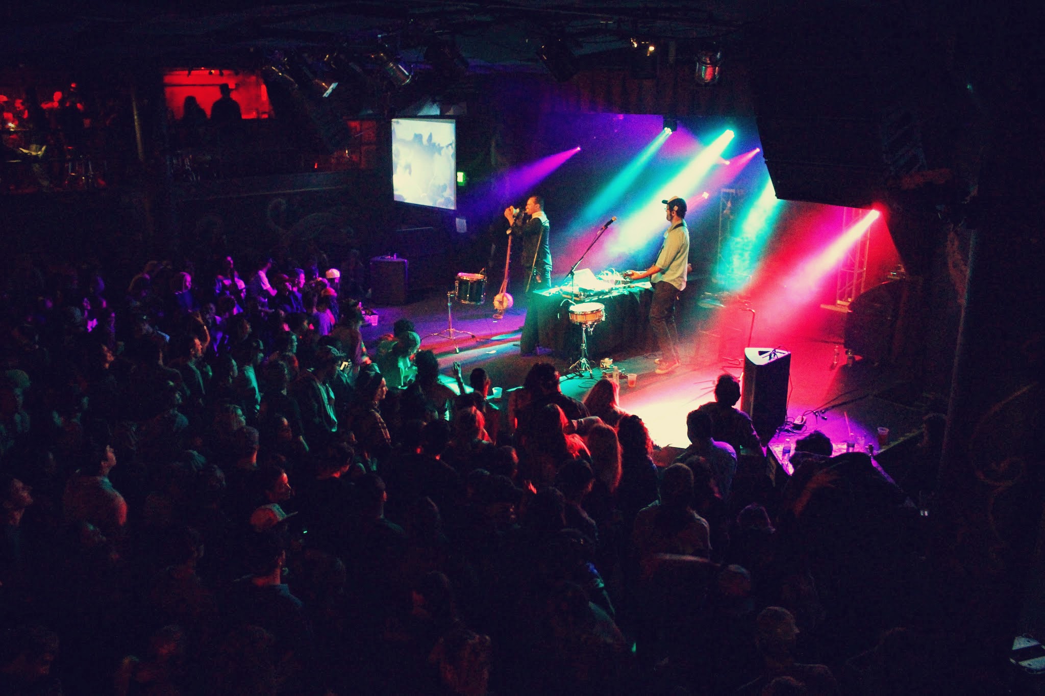 There are very few concerts that make a warming and everlasting impression on your heart, but last Friday at Cervante’s Masterpiece Ballroom was just that. Upon entering the venue, the feeling was immediately mutual: we were all in store for a night of otherworldly, divine bass bliss. Though each artist on the billing had their own very distinct styles, the heavenly booking on this night in particular couldn’t have been better; each set complimented and added to the already stellar vibes that were flowing through the crowd at Cervs. Mumukshu, an LA based glitch hop producer, opened the stage just before Kalya Scintilla and commended attention from the crowd instantly with his spaced-out and organic soundscapes. Fat and juicy beats gave us the sensation of floating underwater, just before intermingling basslines brought us rumbling back towards the surface. Even more mesmerizing were the mind blowing visuals accompanying his set, which pulsated to the bass as it coursed throughout my body from head to toe.
