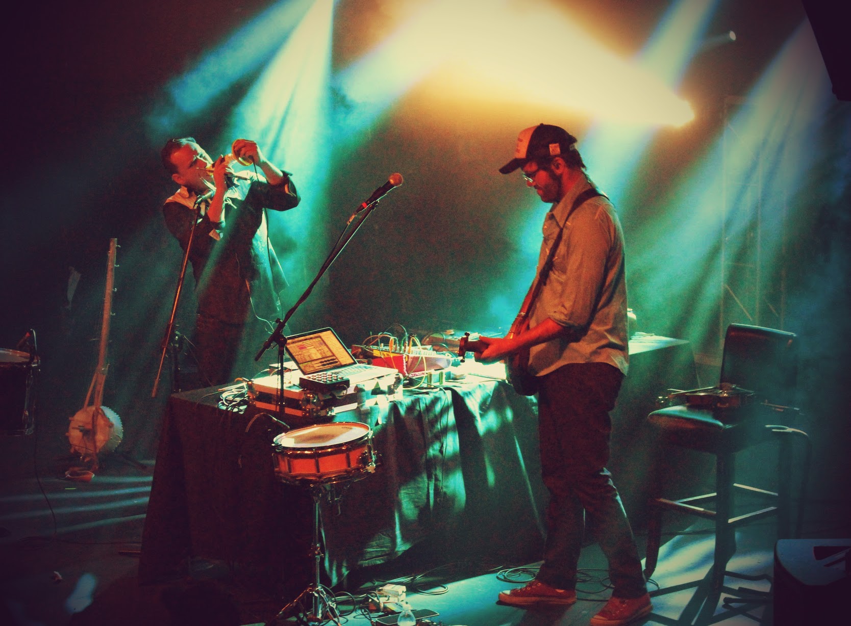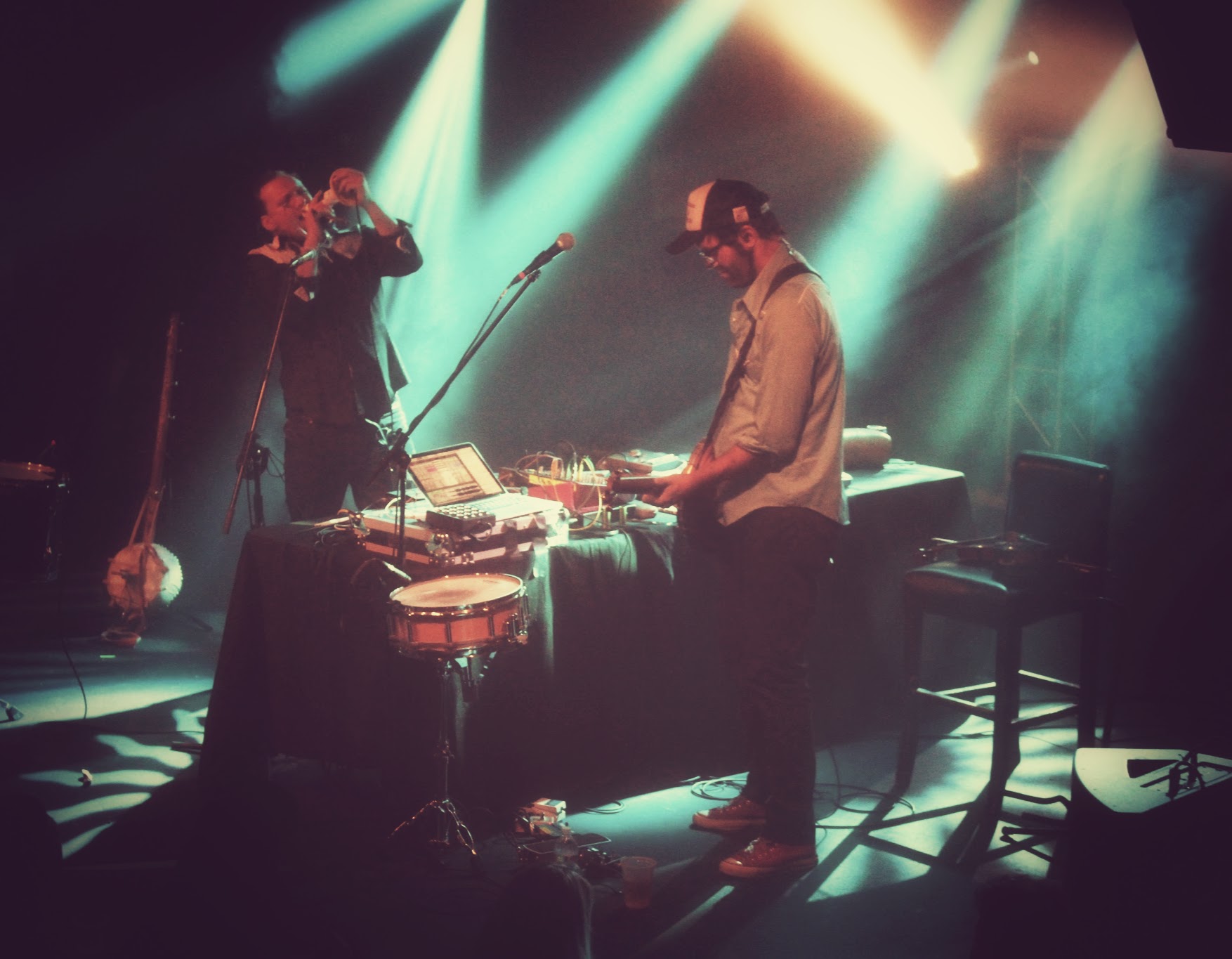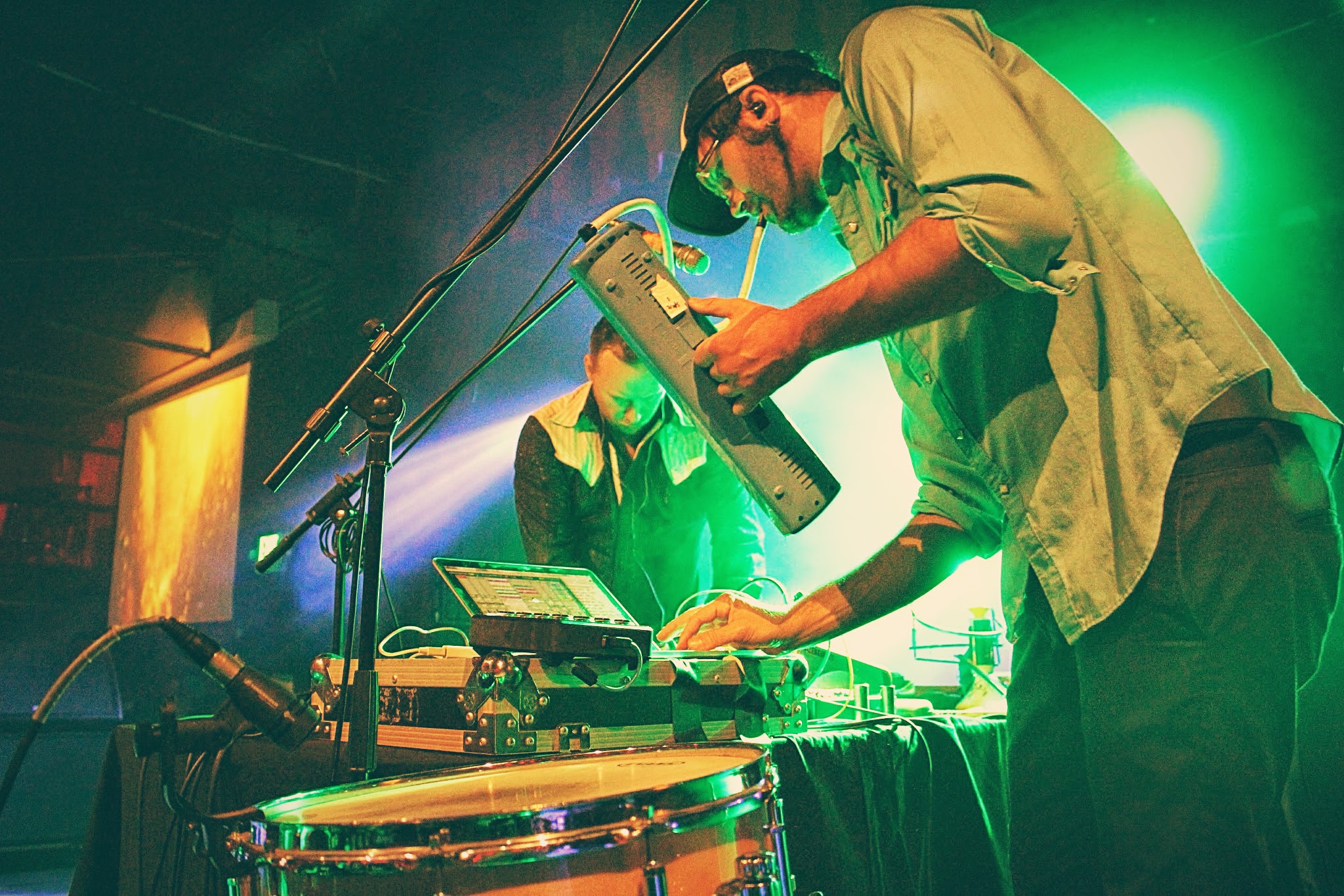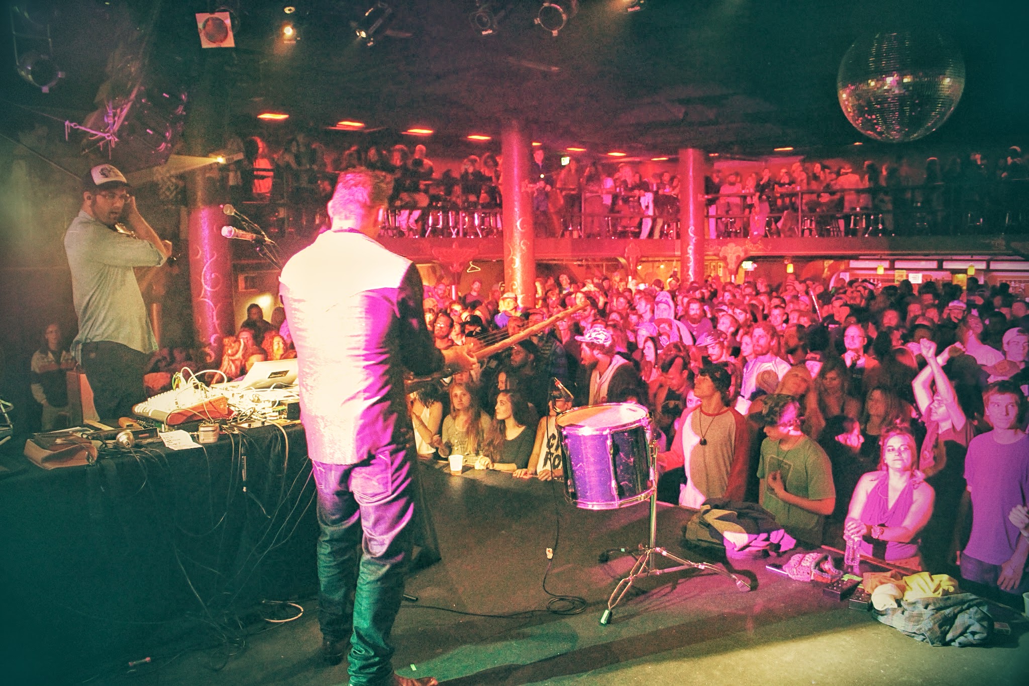 David Satori and Evan Fraser are two artists who simply thrive on the fresh breath of creation. Continuously pushing beyond the confines of their innovative and sexy swamp-backporch folk sound, Dirtwire has impressed me numerous times through headphones alone as well as when I’ve been lucky enough to see them live (most recently during Sonic Bloom). Yet each of those experiences, though all near and dear, paled in comparison when reflecting on the captivating performance given by the duo on that Friday night at Cervantes. With the nights energy at its peak, Dirtwire was welcomed to the stage with loving arms and shouts of admiration from hundreds of Colorado heads.