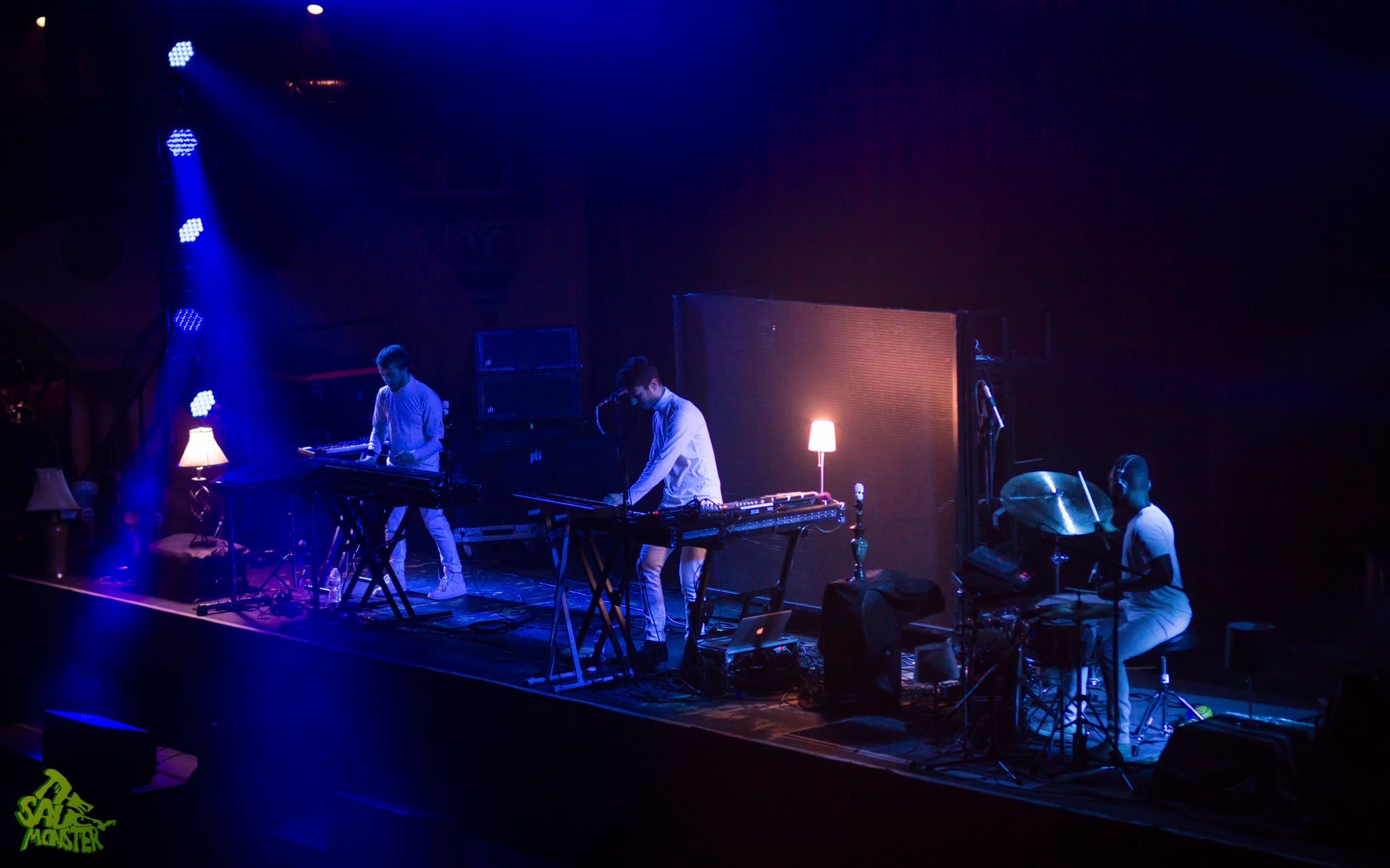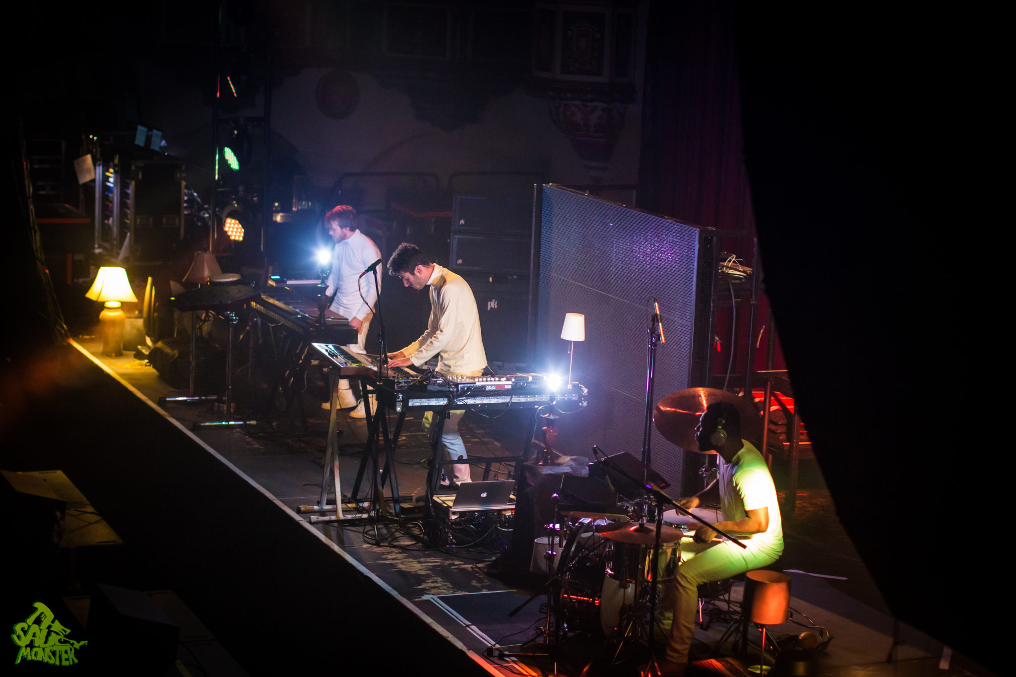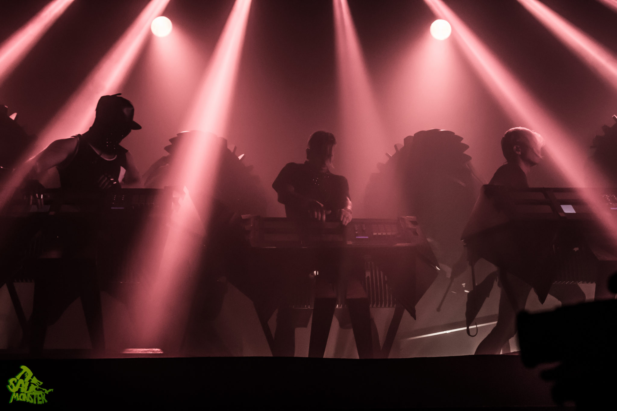 First up for the night was Chrome Sparks, aka Jeremy Malvin, performing live with Bill Delelles and Aaron Steele. I wasn’t sure what to expect as this was the first time seeing them live myself only having the prior knowledge of a 10min Google search before the show. To my surprise, the three played a very chill downtempo set. Their songs called for heavy uses of synthesizers which helped them to create their own unique stylized sound. Their stage setup was totally awesome though, which consisted of having multiple lamps dispersed across the stage, all glowing and flickering to the beats of the music. Chrome Sparks’ slow melodies greeted the Chicago crowd and warmed up the dance floor for The M Machine, who was up next.