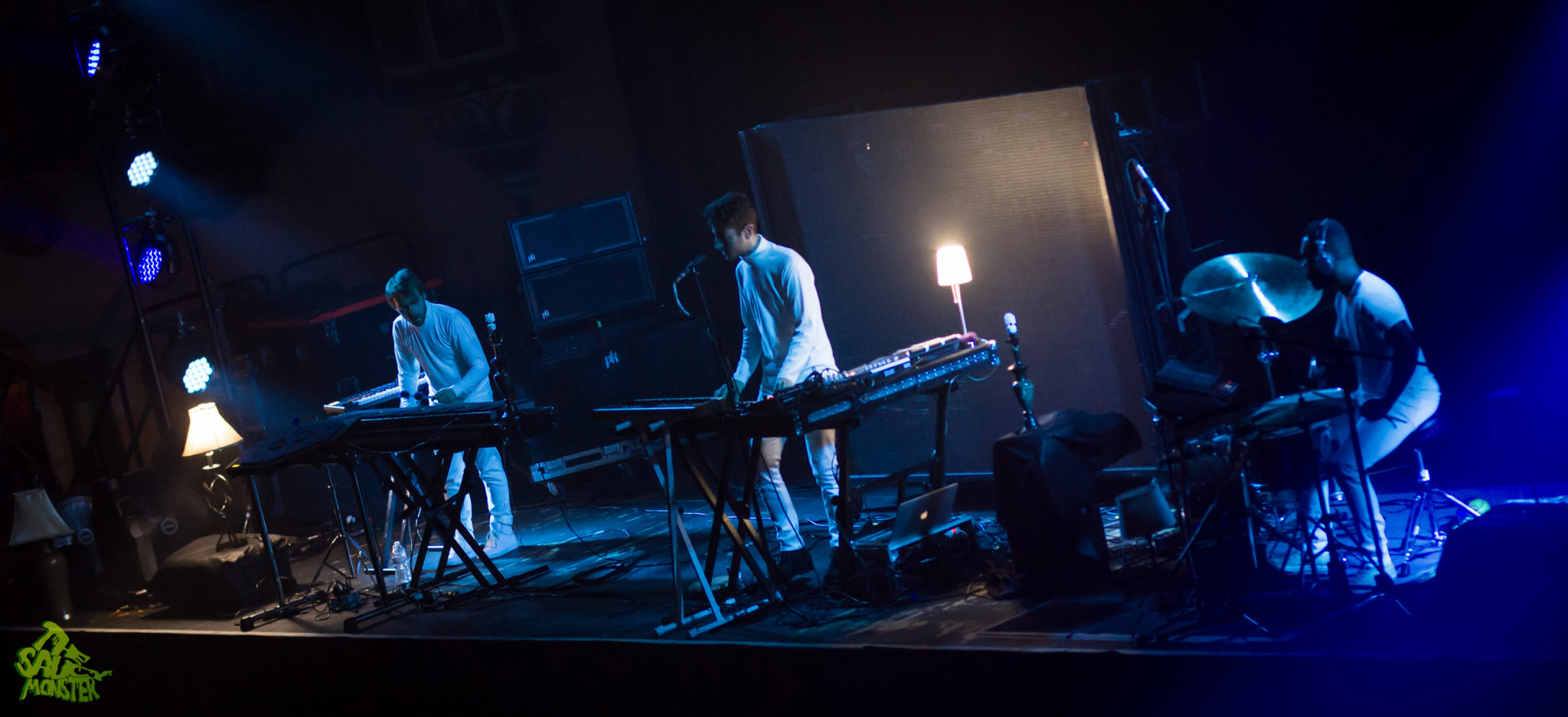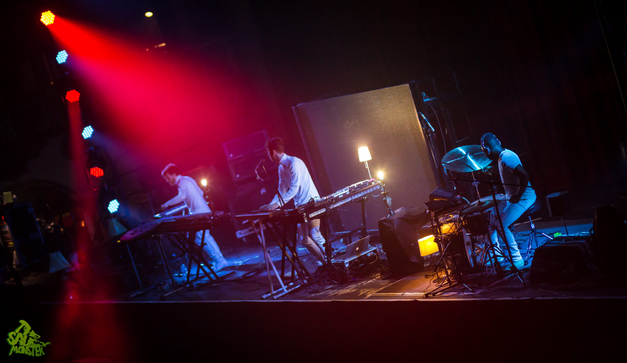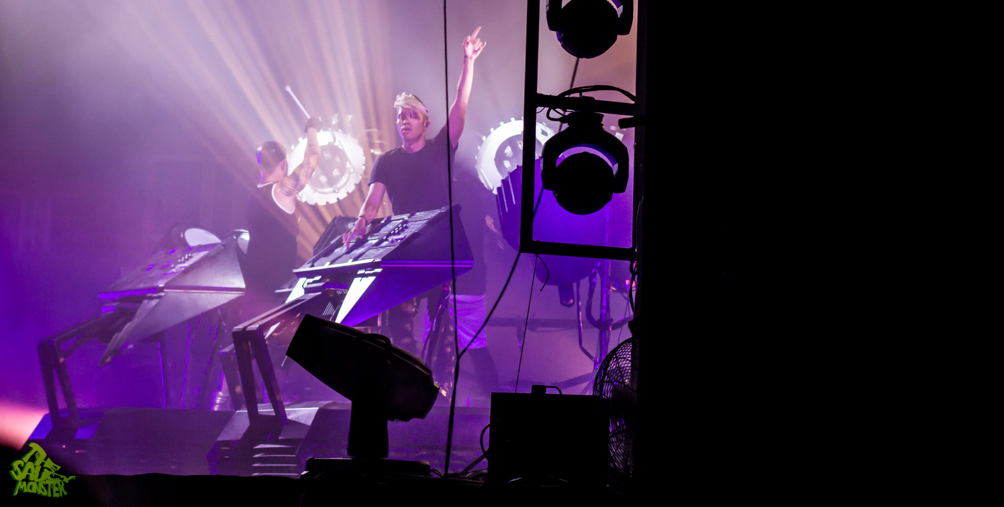 First up for the night was Chrome Sparks, aka Jeremy Malvin, performing live with Bill Delelles and Aaron Steele. I wasn’t sure what to expect as this was the first time seeing them live myself only having the prior knowledge of a 10min Google search before the show. To my surprise, the three played a very chill downtempo set. Their songs called for heavy uses of synthesizers which helped them to create their own unique stylized sound. Their stage setup was totally awesome though, which consisted of having multiple lamps dispersed across the stage, all glowing and flickering to the beats of the music. Chrome Sparks’ slow melodies greeted the Chicago crowd and warmed up the dance floor for The M Machine, who was up next.