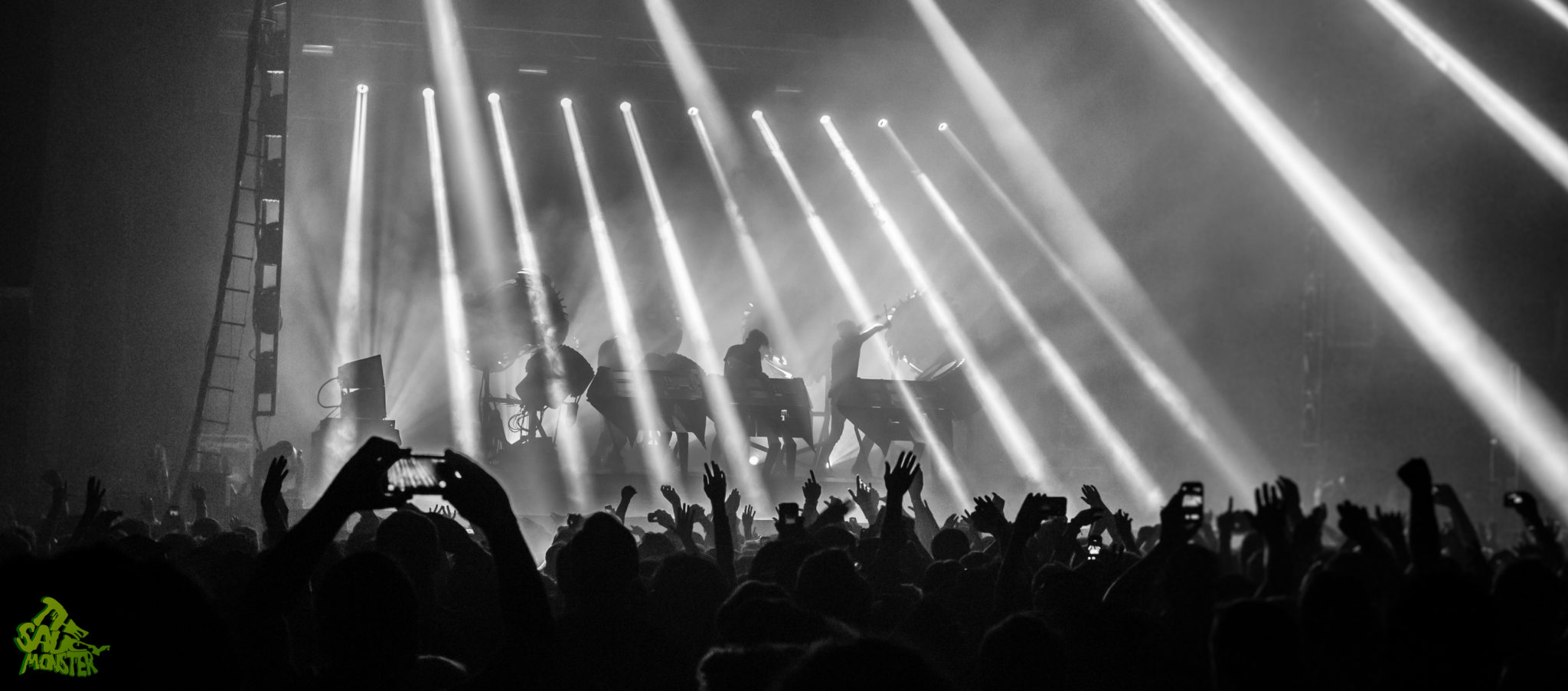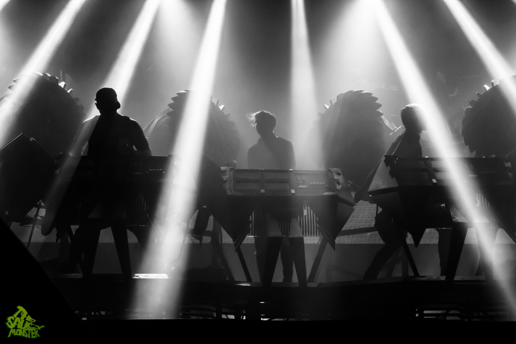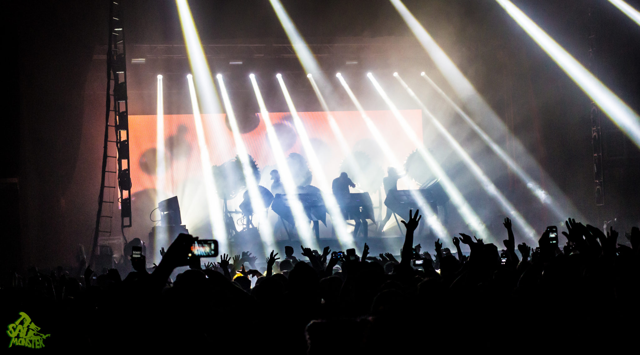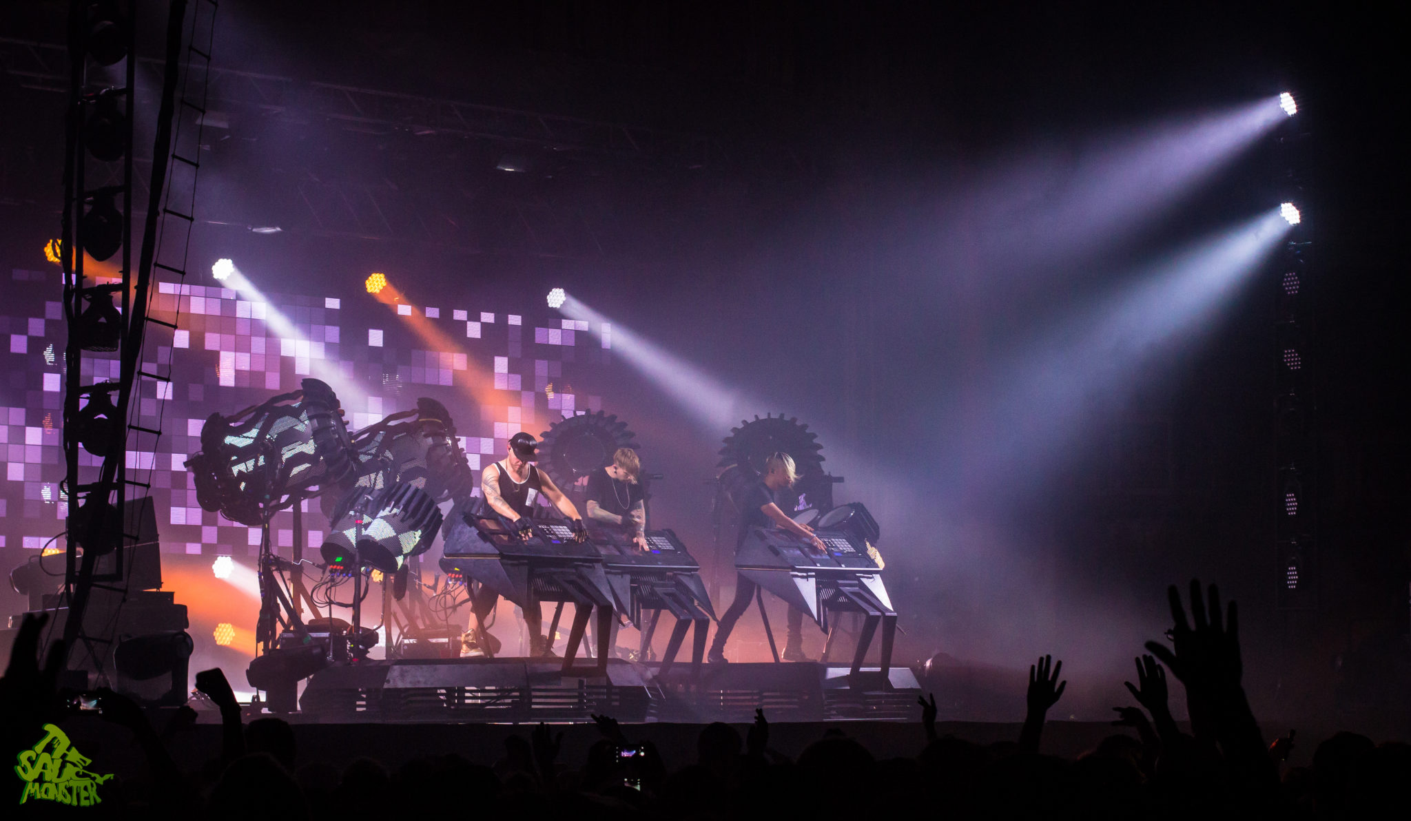The Glitch Mob was up last to headline the night. The crowd cheered wildly as the trio took the stage. Smoke filled the air and powerfully bright backlights placed The Glitch Mob in a silhouetted figure against their enormous industrial-robot like drums. This really set the tone of the performance, immediately hinting towards Glitch Mob’s dark bass-heavy sounds. This was a first time Glitch Mob performance for me as well, to which I was simply amazed watching their creativity on stage. For those who aren’t familiar, The Glitch Mob plays a mixture of live instruments, mainly drums, while also using a variety of midi controllers which are displayed facing outwards to the audience, so the crowd can see how each member is performing live. The show was definitely a very unique experience. It’s always pleasing to see such a creative live-electronic act; it’s a true breath of fresh air from the infinite amount of DJ sets we see today. Good times, cool show!