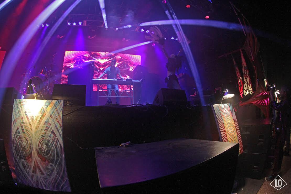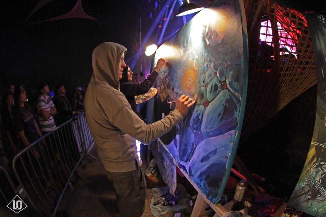 - Colby Buckler of Emancipator Ensemble and live painting by visionary artist Alex Grey. Photo by Lo Motion Photography for Compose Yourself Magazine.