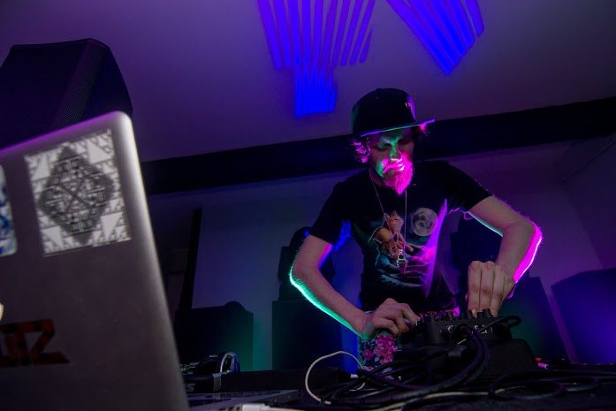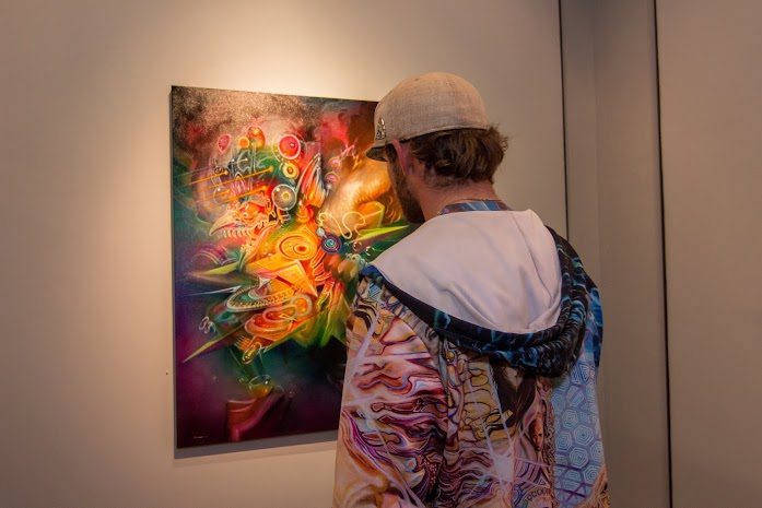 Walking through the door of Knew Conscious, it was almost hard to imagine that the gallery would soon be playing host to an underground massive – with a simple layout consisting of polished floors, modern couches and bright studio lighting, the gallery itself was a beautiful sight. The owners and curators of Knew Conscious were gracious party hosts as well, pointing us towards the open bar when we walked in. We spent quite a bit of time admiring the walls along the way, which were full of vibrant geometric paintings and detailed mandalas. The vibes were at an all-time high even without mention of the musical guests that night – the gallery had a home-like charm that was undeniable. It’s a true rarity to find an untapped venue like Knew Conscious, and I’m extremely grateful to have been apart of such an awesome night of spontaneous music. It’s unexpected nights like these that make us appreciate how special the community in Denver really is.