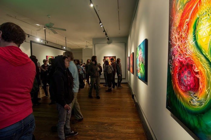 Coinciding with the final night of artists Brian Hampton and Eric Howard’s exhibit, local producers Notorious Conduct, GODLAZER, and Atomic Reactor were already getting the late night started with their original beats. The walls were pulsing with bass goodness as people began to file in, stopping to get drawn into the jaw-dropping artwork lining the gallery.