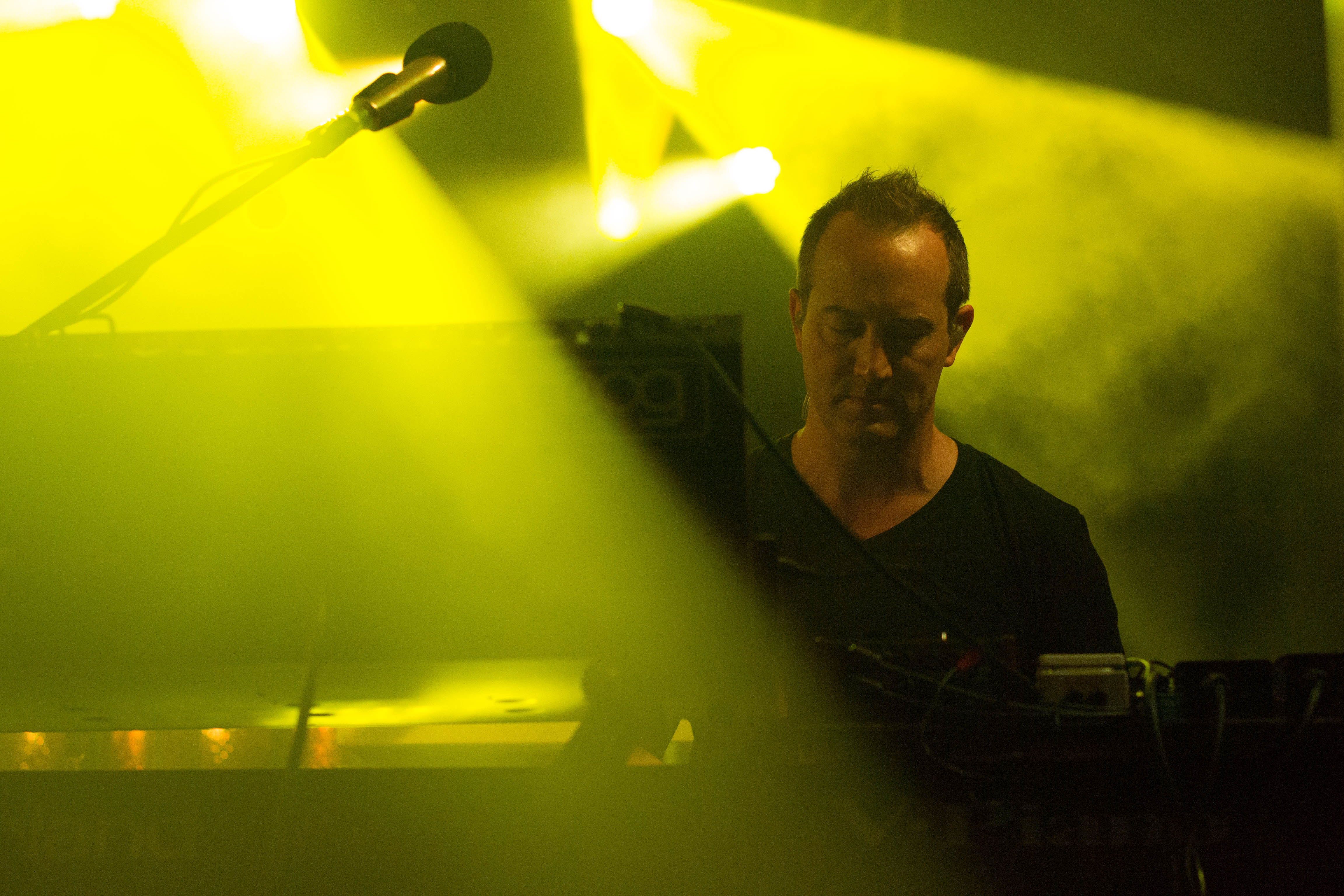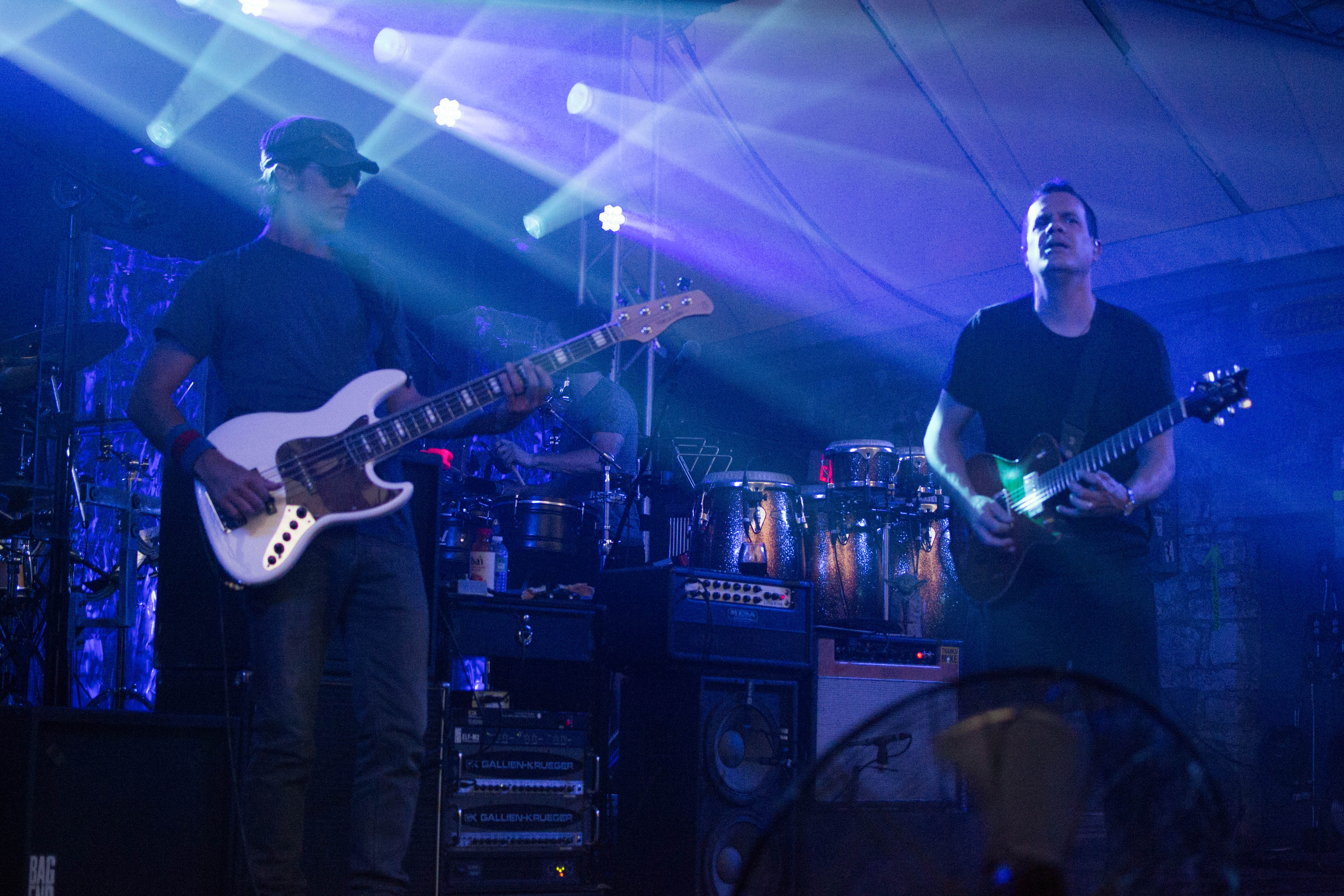 As the first set progressed, the sun dipped behind the surrounding buildings and night descended. Bassist Ryan Stasik’s sunglasses came off, and it started getting real. The onstage communication was constant. Nods and gestures guided the music along, often bringing it back from the brink of frantic climaxes on the verge of spilling over— welcome releases that wound us into ecstatic frenzies.