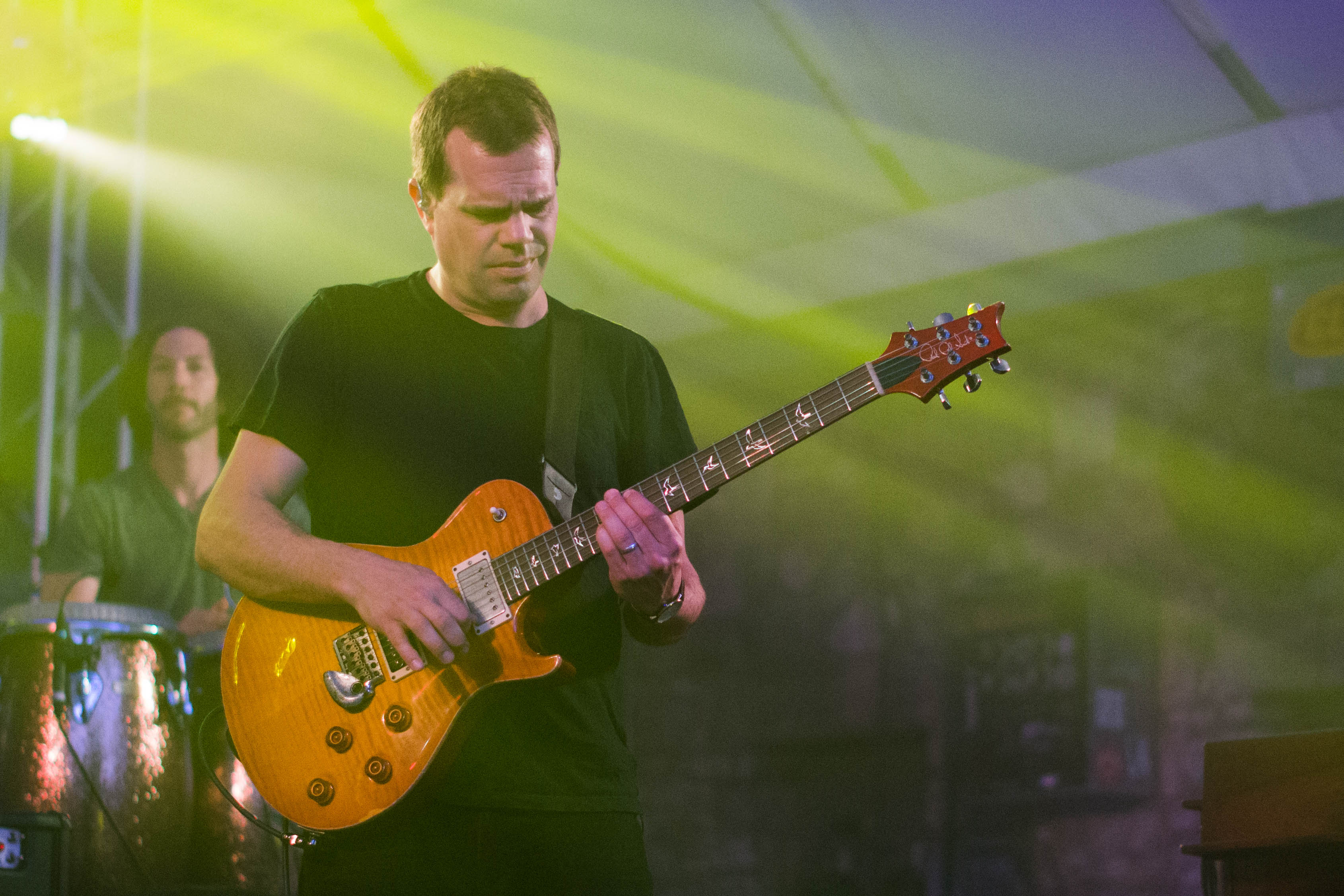 The sun was still out when Umphrey’s took the stage. They wasted little time getting situated, and quickly lit into “There’s No Crying in Mexico.” From there, amid the ever-churning colored lights and strobes, the band hopped effortlessly from tune to tune and tore through improvisational excursions—essentially doing what they do best.